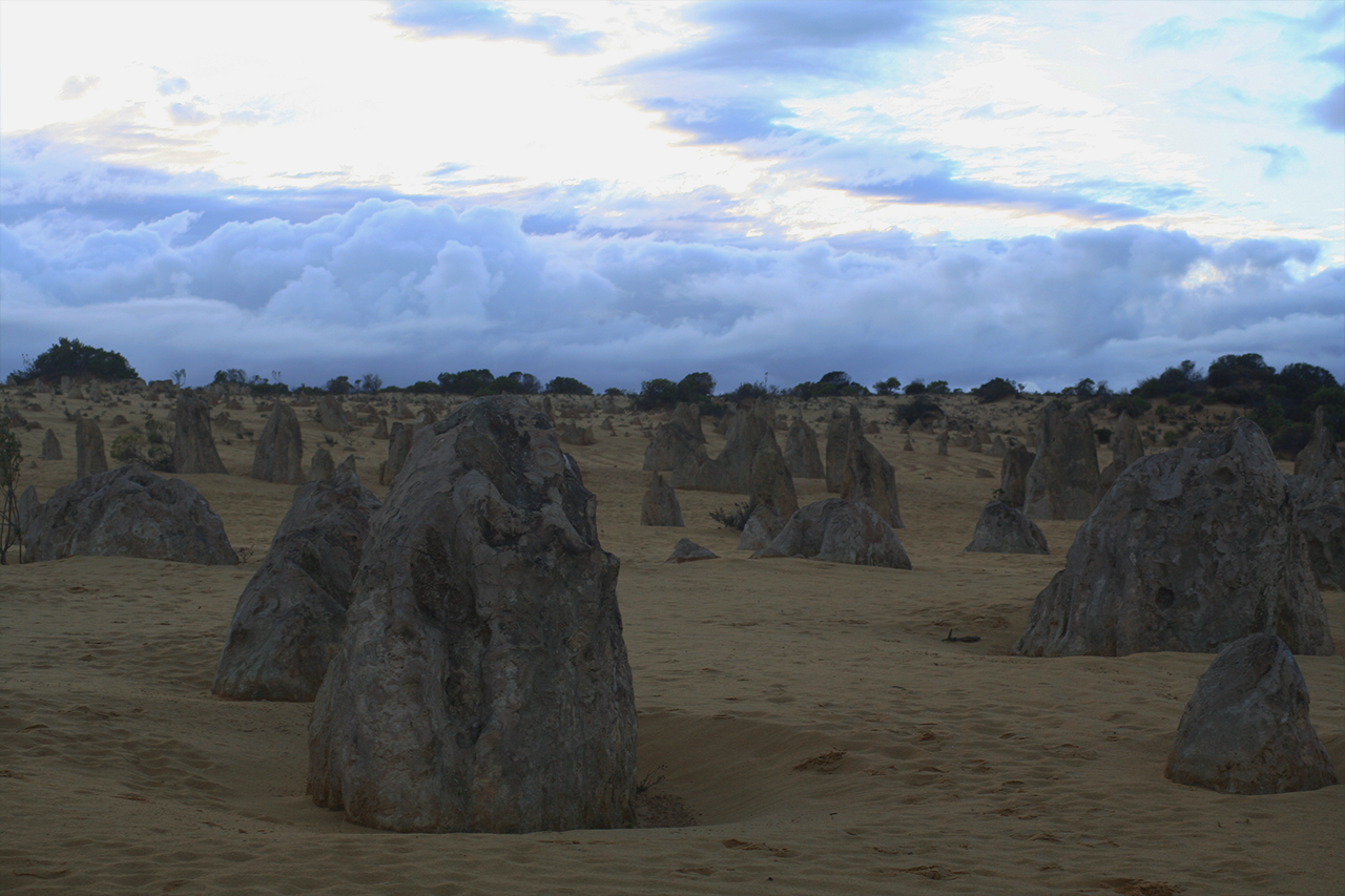 V ten večer sme dorazili do Nambung National Park, ktorý sa nachádza 260 km severne od mesta Perth a kde sa nachádzajú slávne Pinnacles. Podľa legendy tisíce limestone pilierov, ktoré sa rozprestierajú na horizonte, sú sochy bojovníkov zo starovekého boja. Najpozoruhodnejšie a najkrajšie sú pri západe alebo východe slnka.